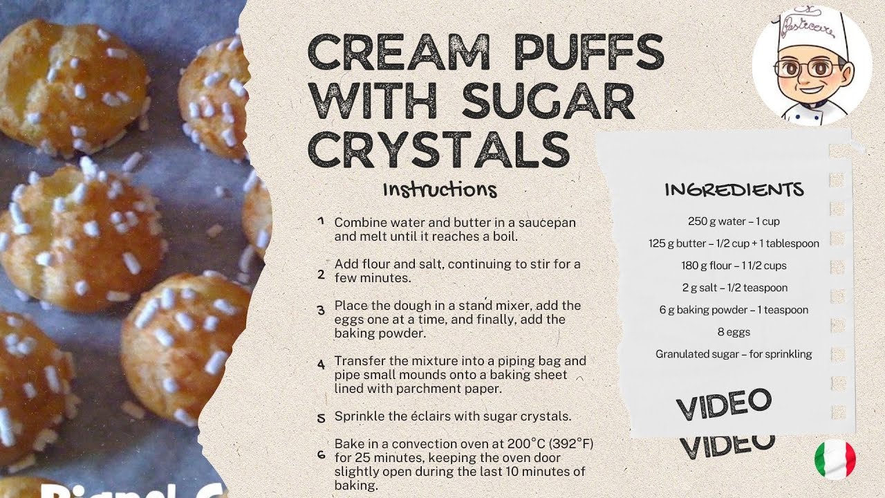 #CreamPuffsWithSugarCrystals #ItalianPastry #SugarCrystals #ChouxPastry #Profiteroles #ItalianDesserts #ItalianSweets #HomemadeCreamPuffs #HowToMakeCreamPuffs #ItalianPastryRecipes #DolciItaliani #PastryRecipes #SugarCrystalPastry #EasyCreamPuffs #ItalianPastryChef #DessertRecipes #SweetRecipes #CookingWithExPasticcere #PastryTutorial #ExPasticcereRecipes #CreamPuffsTutorial #TraditionalItalianPastry
