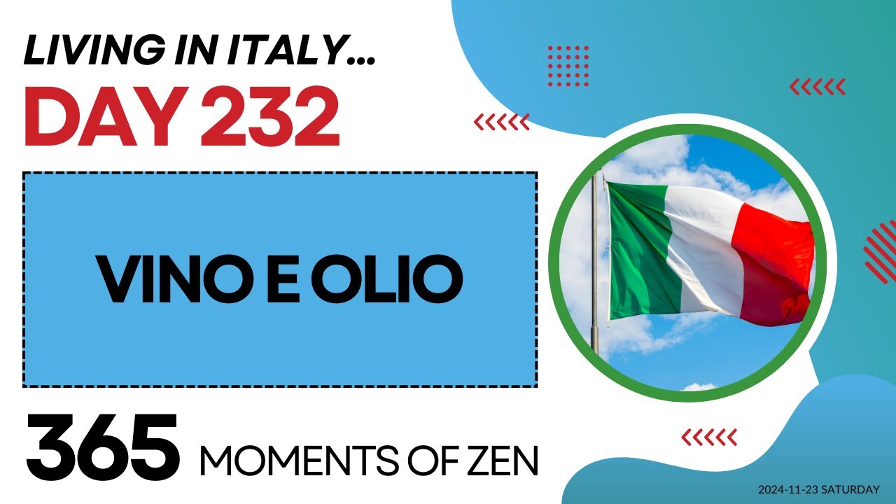 (Day 232) We moved to Italy (from Canada) in April of 2024. I’m recording daily videos showing my appreciation for the new country and what I call a “moment of Zen” – a moment of reflection and gratitude that brings me peace and joy.