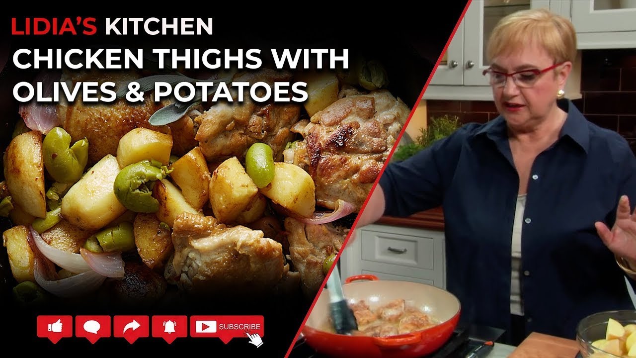 Recipe – https://lidiasitaly.com/recipes/skillet-chicken-thighs-cerignola-olives-potatoes/