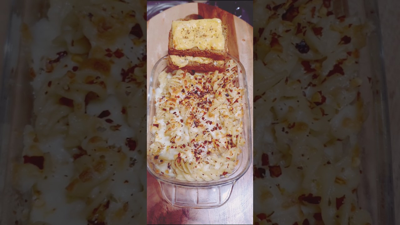 This simple yet delicious dish combines the creamy richness of the white sauce pasta with the crispy, cheesy garlic breadβperfect for a cozy meal!
