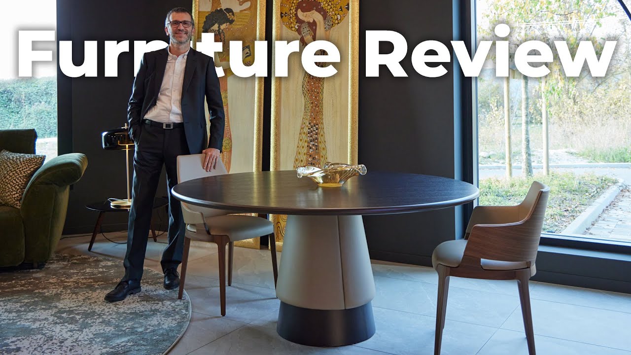 In the video, an Interior Designer reviews the Hamide table with a 160 cm diameter and height of 75 cm, with the possibility of seating 6 to 8 people. Our table features a central base upholstered in Lord leather, paired with a beautiful table top in Wengé stained ash wood.