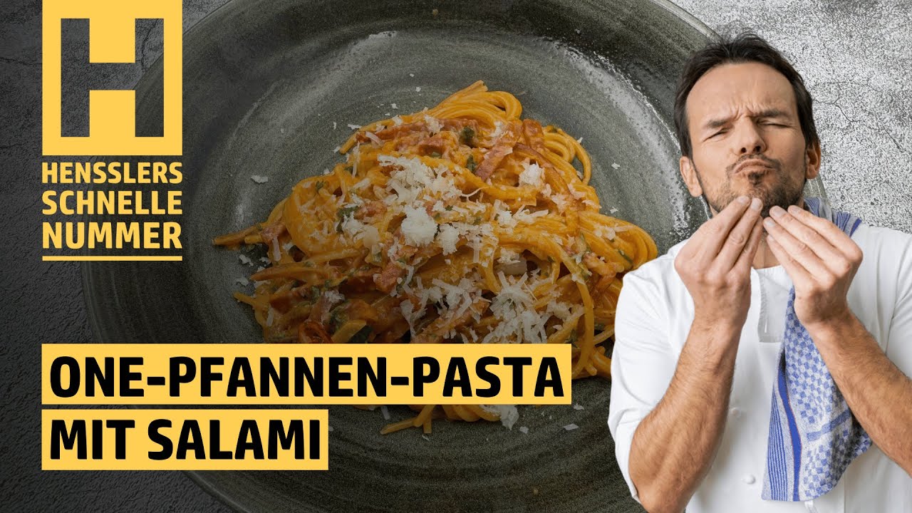Das schnelle One-Pfannen-Pasta mit Salami Rezept vom Henssler – Schnell und einfach selbst kochen! Mehr schnelle Gerichte und Rezepte mit Video-Anleitungen findet Ihr auf ► https://t1p.de/bcv5l