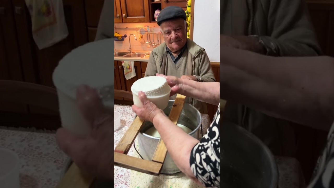We are in Seuni, in the heart of Sardinia, filming Livia and her husband Aldo, who is a retired shepherd. We’ve already filmed the video on how to make ravioli stuffed with this ricotta, and in this video, we’re showing you how it’s produced. The full video is available on www.pastagrannies.com