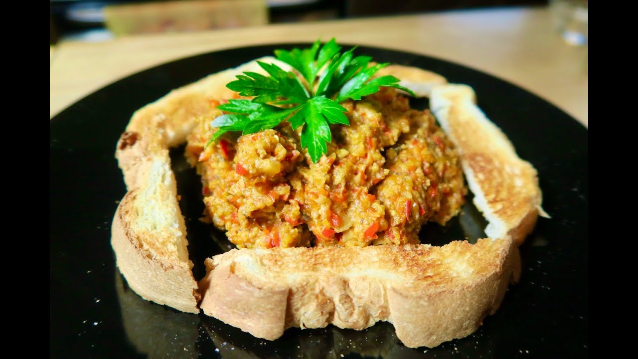 Peel the eggplant and cut into chunks. Add mushrooms and onion. Place in Food Processor and blend until mushy consistency.