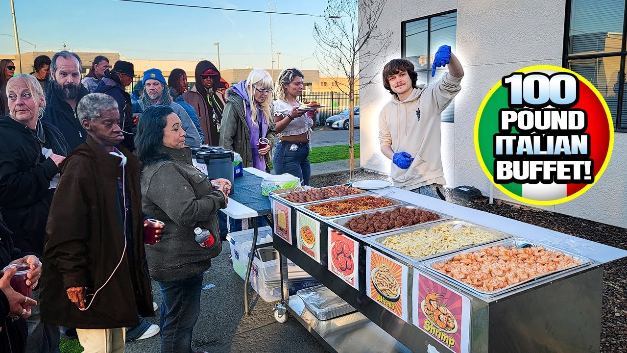 In this video we make 100 Pounds of Italian food and set up a huge buffet for the homeless community to enjoy!