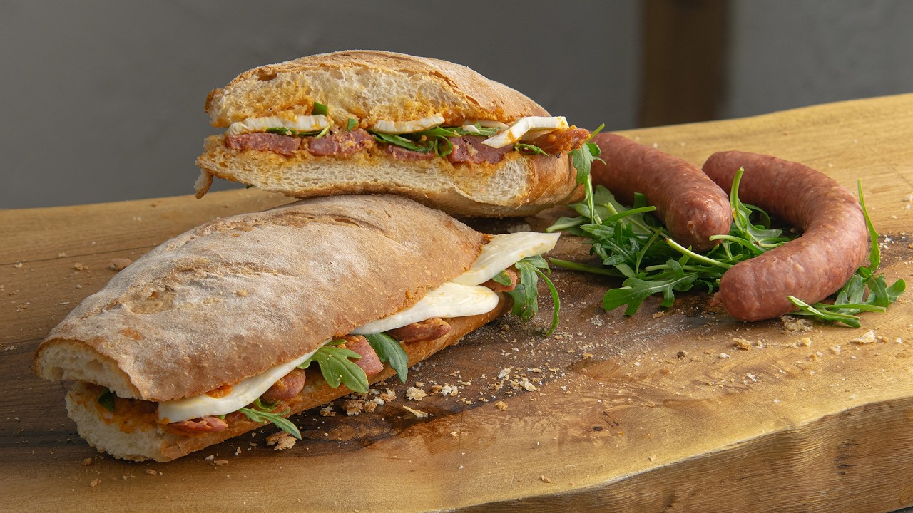 This sandwich is inspired by Italian cuisine, showcasing rich flavors and unique combinations. Juicy sausages paired with flavorful marinara sauce, fresh arugula, and mozzarella cheese, all enhanced by chili oil and a touch of balsamic vinegar, create a delightful and satisfying taste. Served on French bread or ciabatta, the texture perfectly complements the ingredients. The chili oil featured in the video has a very simple recipe. If you’d like to learn how to make it, let me know in the comments. This sandwich is perfect for a quick, delicious, and aromatic meal.