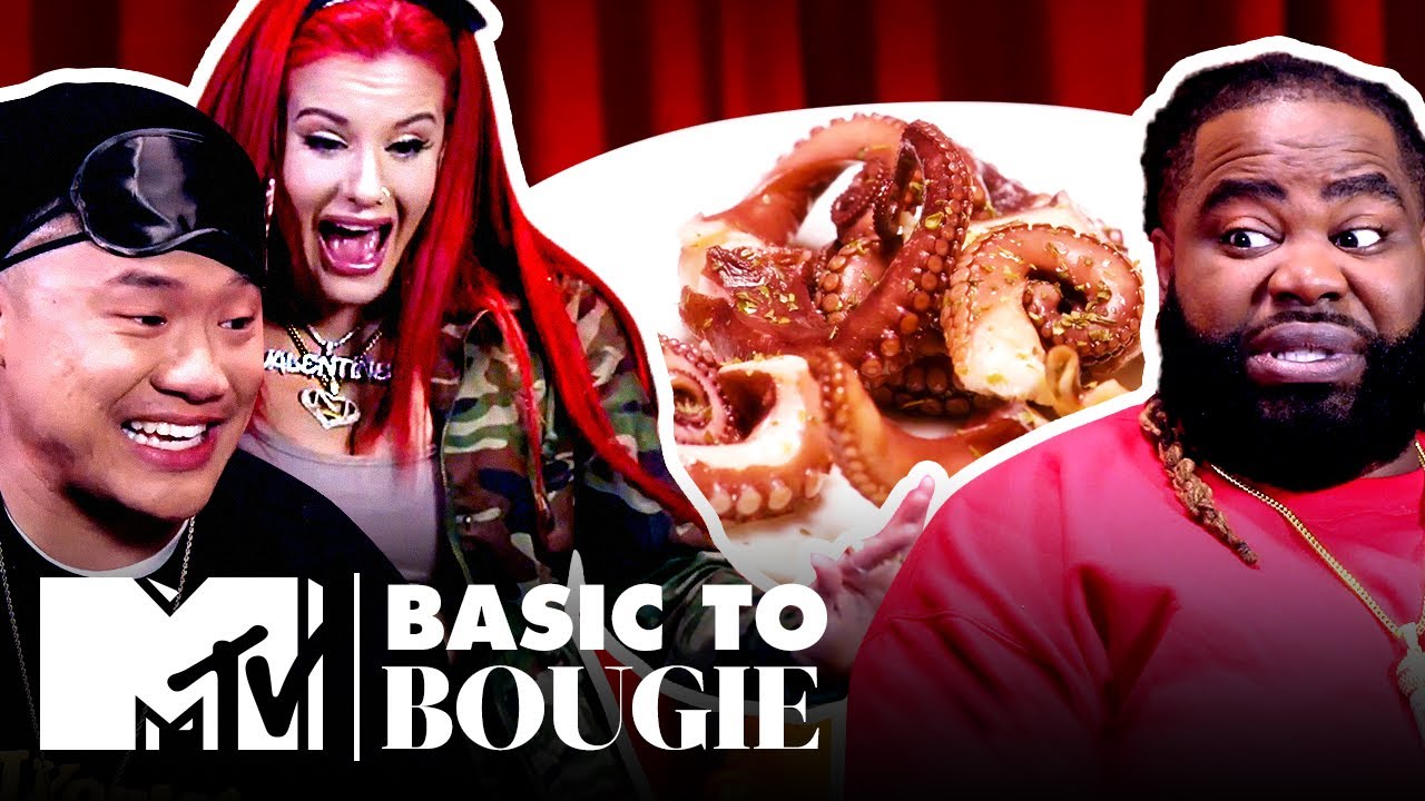 It’s the ultimate “highbrow” versus “lowbrow” showdown! MTV’s Timothy DeLaGhetto, Darren “Big Baby” Brand, and Justina Valentine return for Season 4 of “Basic to Bougie,” ready to sample and guess the prices of some of the finer (and less-than-finer) foods the world has to offer. Today, they try guacamole and octopus.