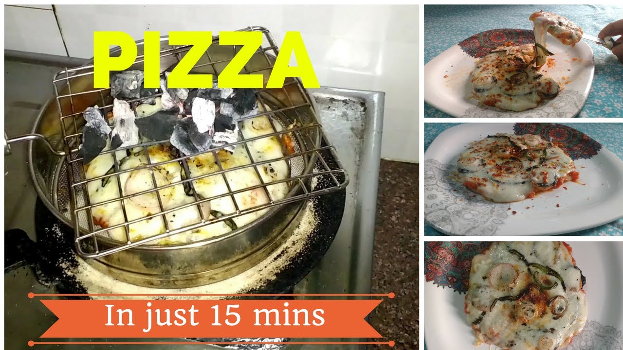 Check out this video, It is very easy and simple method where I show you how to make a veg Indian style Pizza on Tawa / Pan withou using oven 🙂