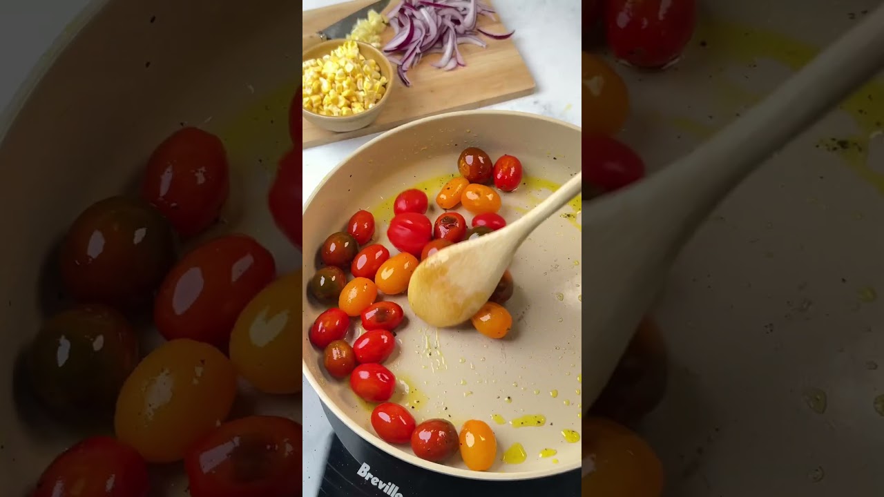 Crispy golden gnocchi meets juicy cherry tomatoes, sweetcorn, peppery rocket, and creamy burrata in this quick and delicious weeknight dinner. A drizzle of pesto and fresh basil bring everything together for the ultimate speedy meal that makes the most of fresh summer produce.