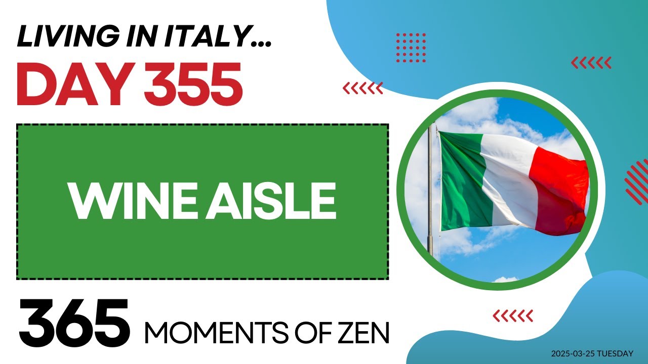 (Day 355) We moved to Italy (from Canada) in April of 2024. I’m recording daily videos showing my appreciation for the new country and what I call a “moment of Zen” – a moment of reflection and gratitude that brings me peace and joy.