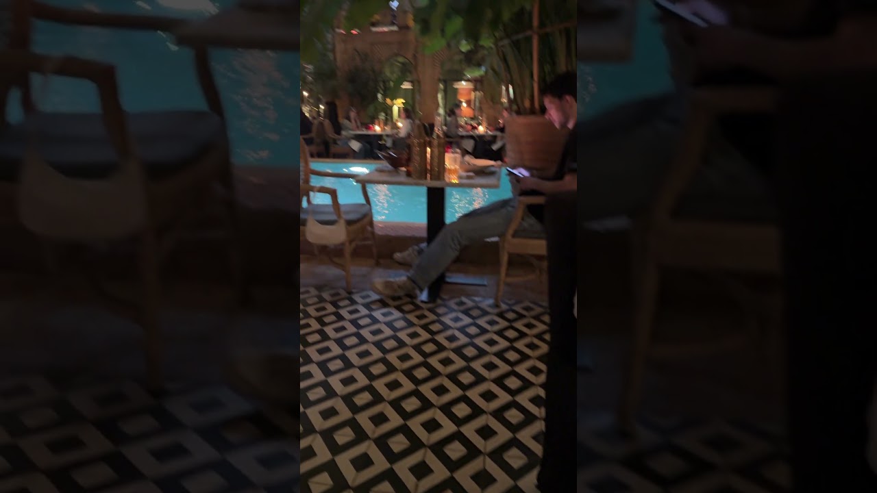 On the second evening of our stay in Marrakech, we reserved a table at La Trattoria, located at 179 Rue Mohammed el Beqal, an exquisite Italian restaurant. Upon arrival, we were warmly welcomed and shown to the charming waiting area nestled within the verdant garden at the restaurant’s entrance. Before long, we were escorted to our table—one of the many tastefully arranged around the pool within the enchanting and elegant Riad-style architecture of Marrakech. The entire dining experience proved to be an absolute delight.