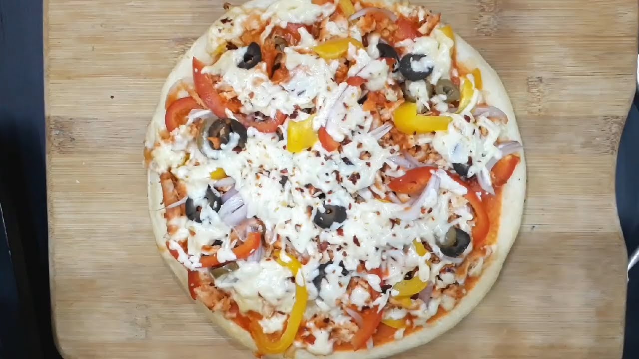 TAWA PIZZA / Chicken cheese pizza on tawa/ pan recipe/ pizza without oven