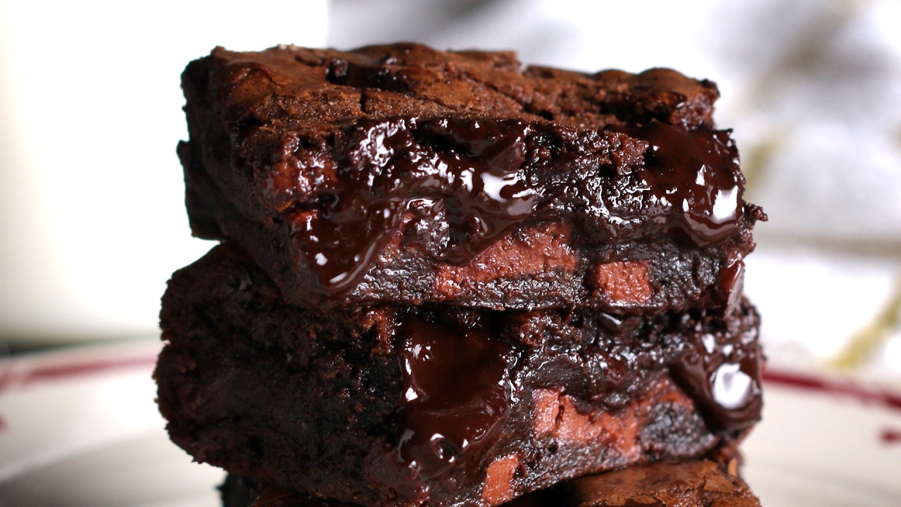 Fold the dry ingredients into the wet ingredients, being careful not to overmix as this will cause the brownies to be more cake-like in texture.