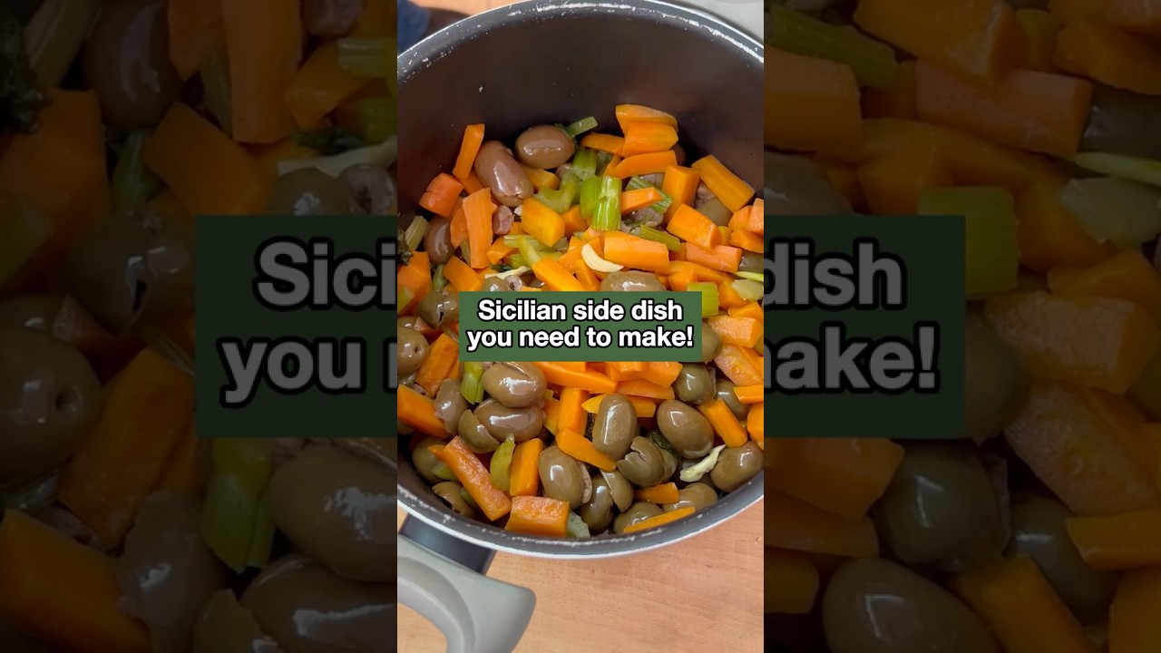 This is Stimpirata (also spelled “stimpiratu”), a Sicilian dish that typically involves vegetables such as carrots, celery, onions, and sometimes olives and garlic. It’s often prepared as a sautéed dish, usually served as a side dish or as part of a larger meal. This one was delicious, especially as the olives were homemade by our ladies!