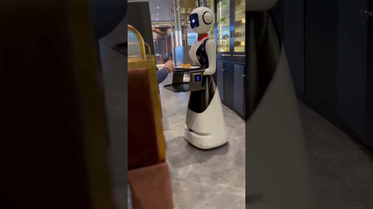 On Thursday, curious customers were seen receiving service from the robots and taking pictures of the special waiters.