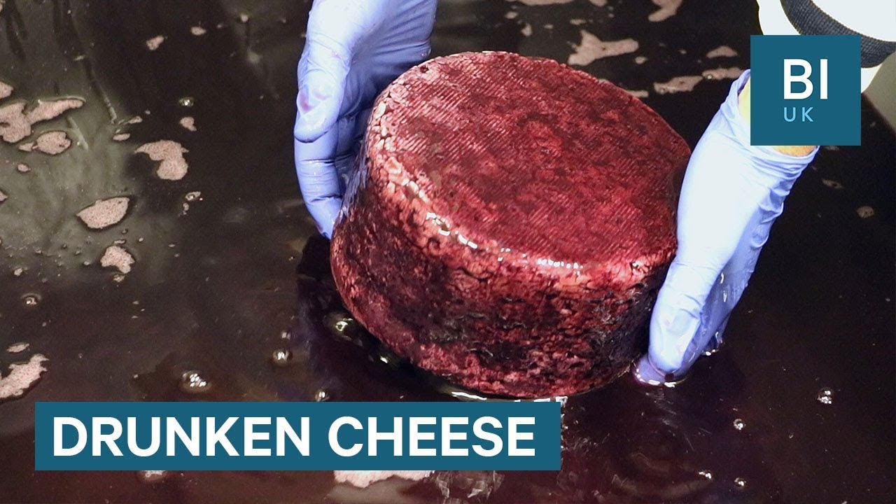 It all starts with a pasteurised cow’s milk cheese wheel which is used as a base. This kind of cheese is made specifically for the factory to “get drunk” in wine.