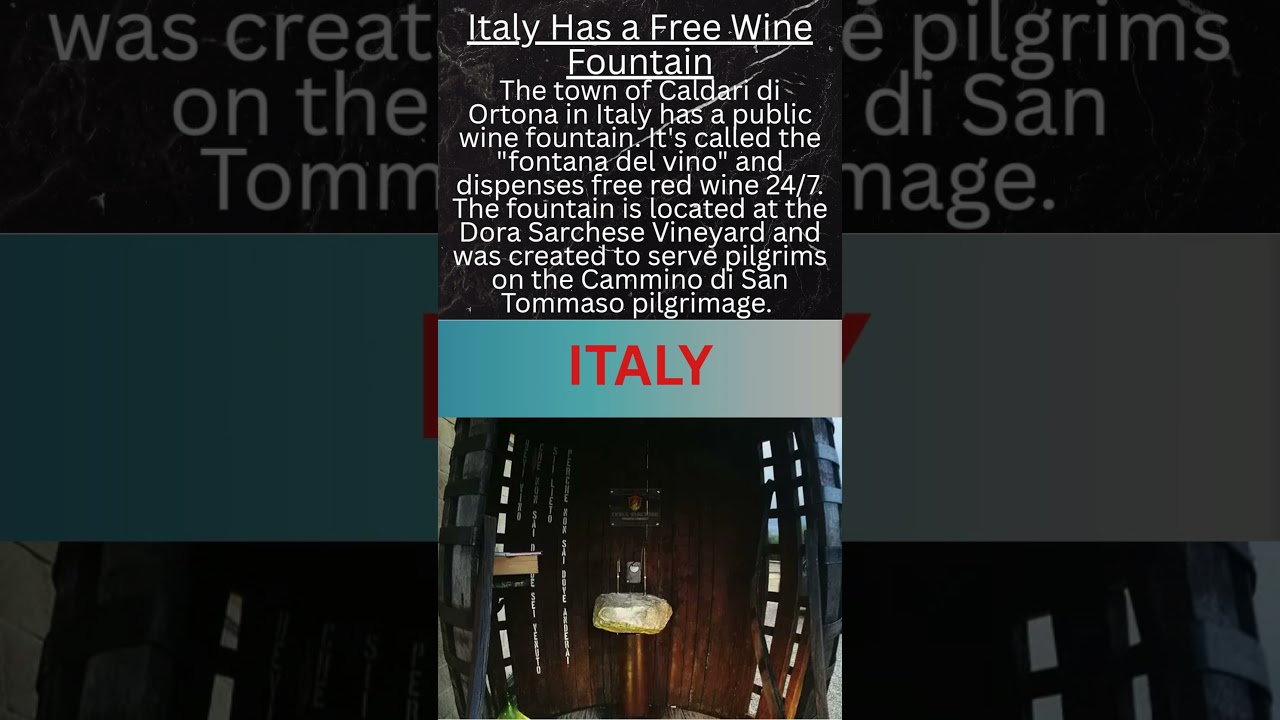 What a wonder to have a wine fountain open to the public. educational shortsfact shortsitalianItalian WineItalyItaly WineQuick FactsShortsvideoviral shortsVlogwineyoutube shortsWrite A CommentYou must be logged in to post a comment.
