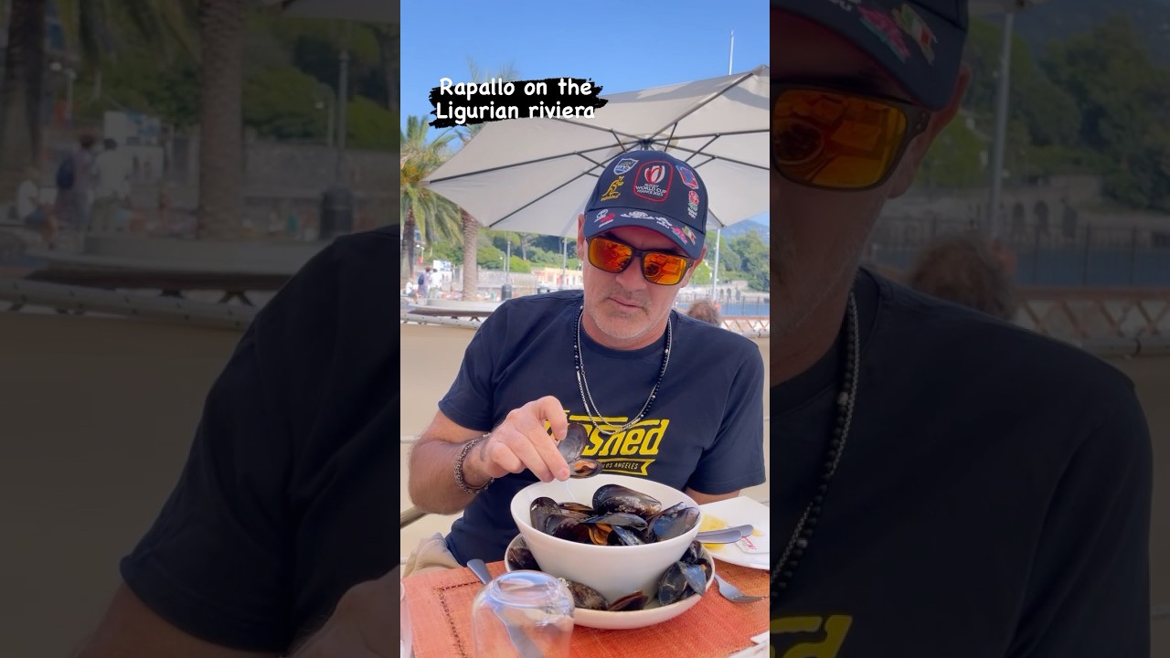 Eating Cozze alla marinara in beautiful Rapallo on the Ligurian Riviera in Italy. It’s a beautiful October day and the sea water is clear as mineral water and warm as a nice bath. Eating mussels and drinking wine with my sky prickly from the salt water and sunshine. What a great day!