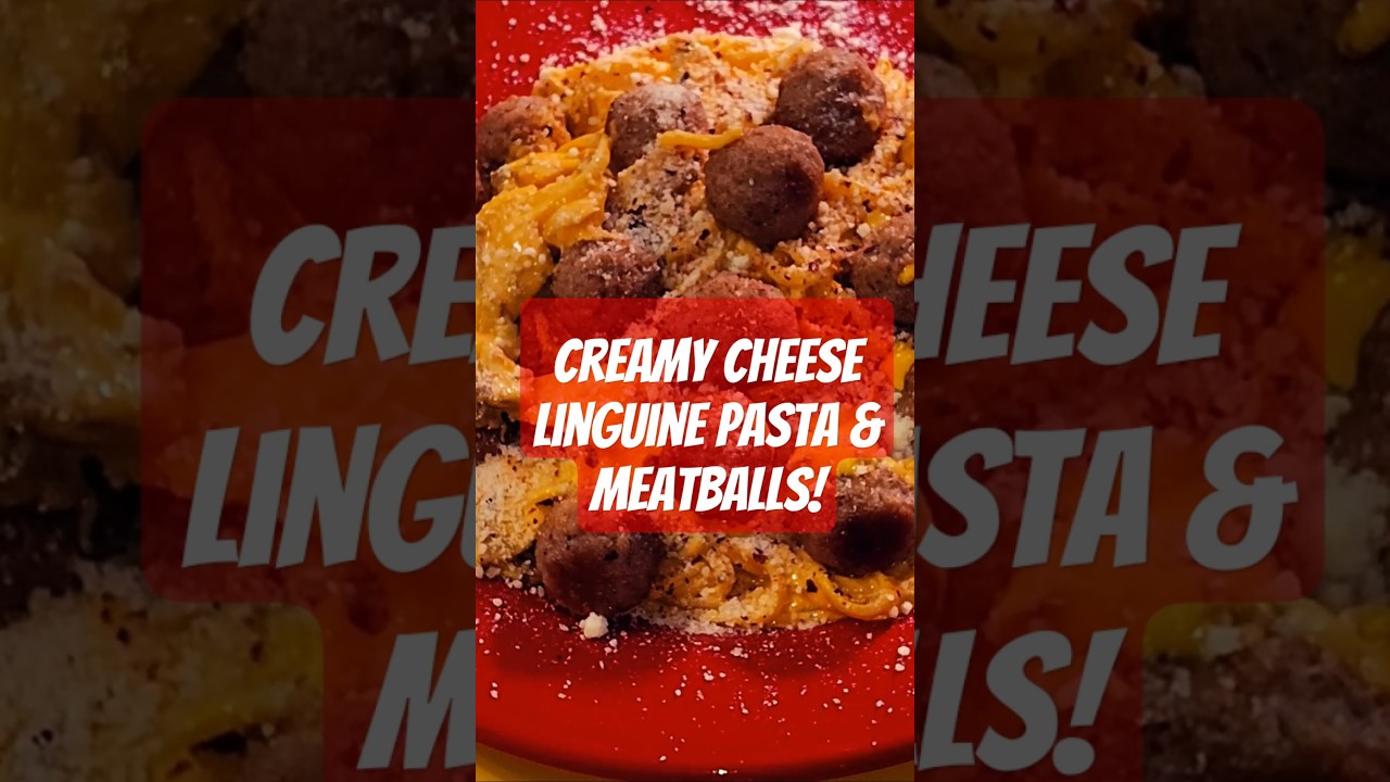 Linguine with Double Cheddar cheese added with fresh crushed garlic. Mushrooms and Italian seasoning. Topped with Meatballs and dusted with Parmesan and red pepper flakes. #asmr #cooking #chefselection #asmrcooking #asmrvideo #food #recipe #spaghettirecipe