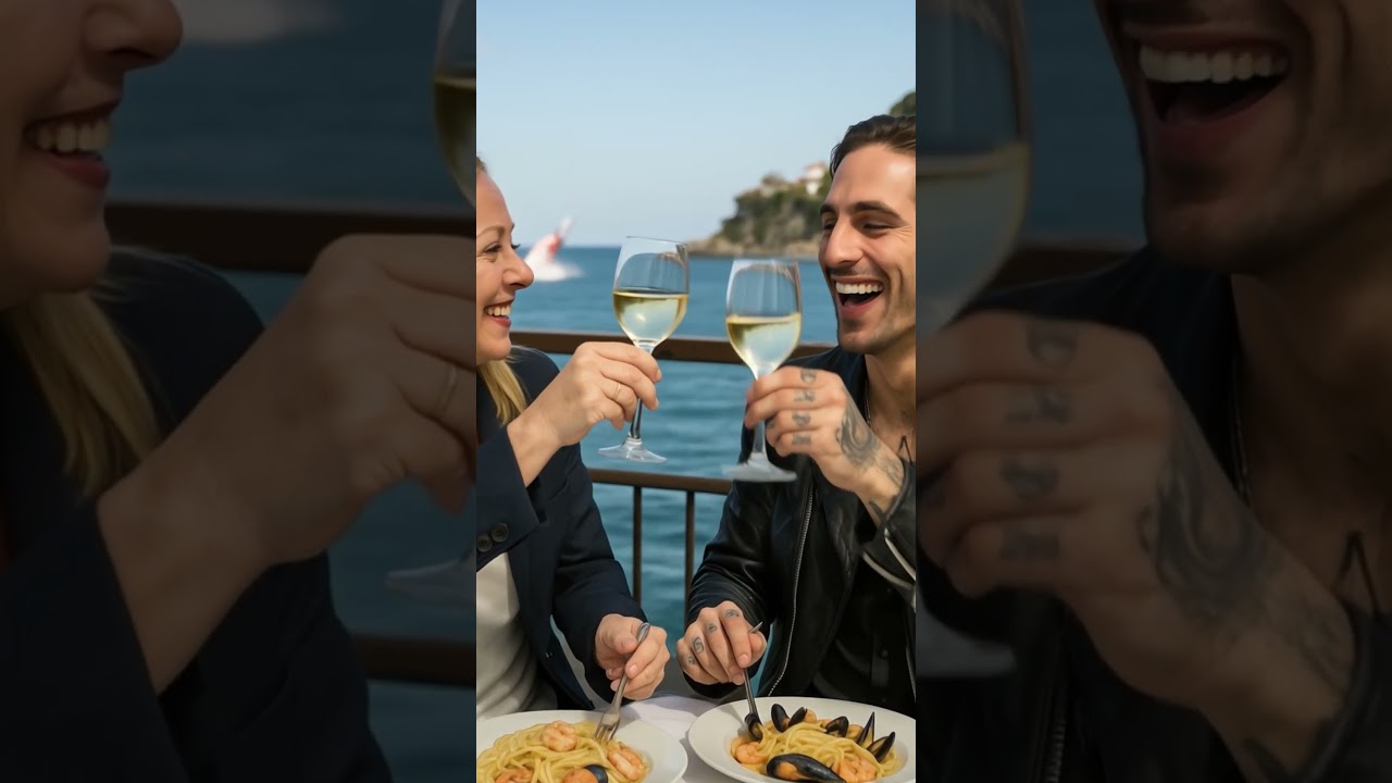 Italian PM Giorgia Meloni and rockstar Damiano David enjoy a sunny seaside lunch, laughing over seafood pasta and white wine… until a monstrous creature erupts from the water behind them. Politics, pop culture, and pure chaos — welcome to the Italian cinematic universe you never expected.