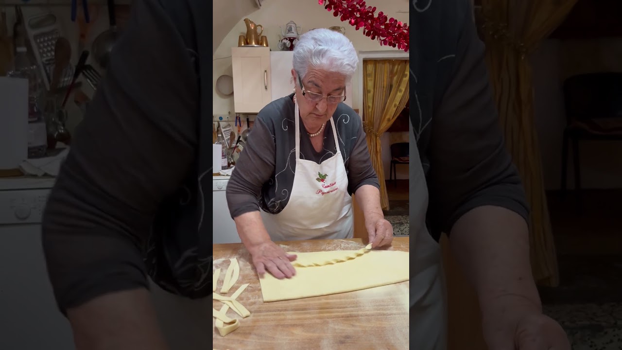 This type of pasta is called sagne torte, a traditional, hand-rolled pasta known for its twisted or curled ribbon shape. We had that with some delicious tomato sauce! Sagne torte literally means “twisted ribbons” or “bent lasagna”—describing the pasta’s curled or spiral shape.