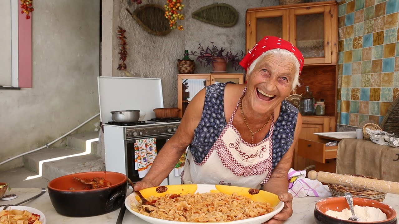 Meet characterful Biggina from the island of Ischia, near Naples. Wild rabbits are plentiful on the island, and this sauce is called ‘coniglio all’ischitana’ – swap rabbit with pheasant (or similar game bird) if you cannot find the former. The dish will cease to be Italian, but will taste very similar. Remember to include the livers as Biggina uses everything for extra richness and no wastage.