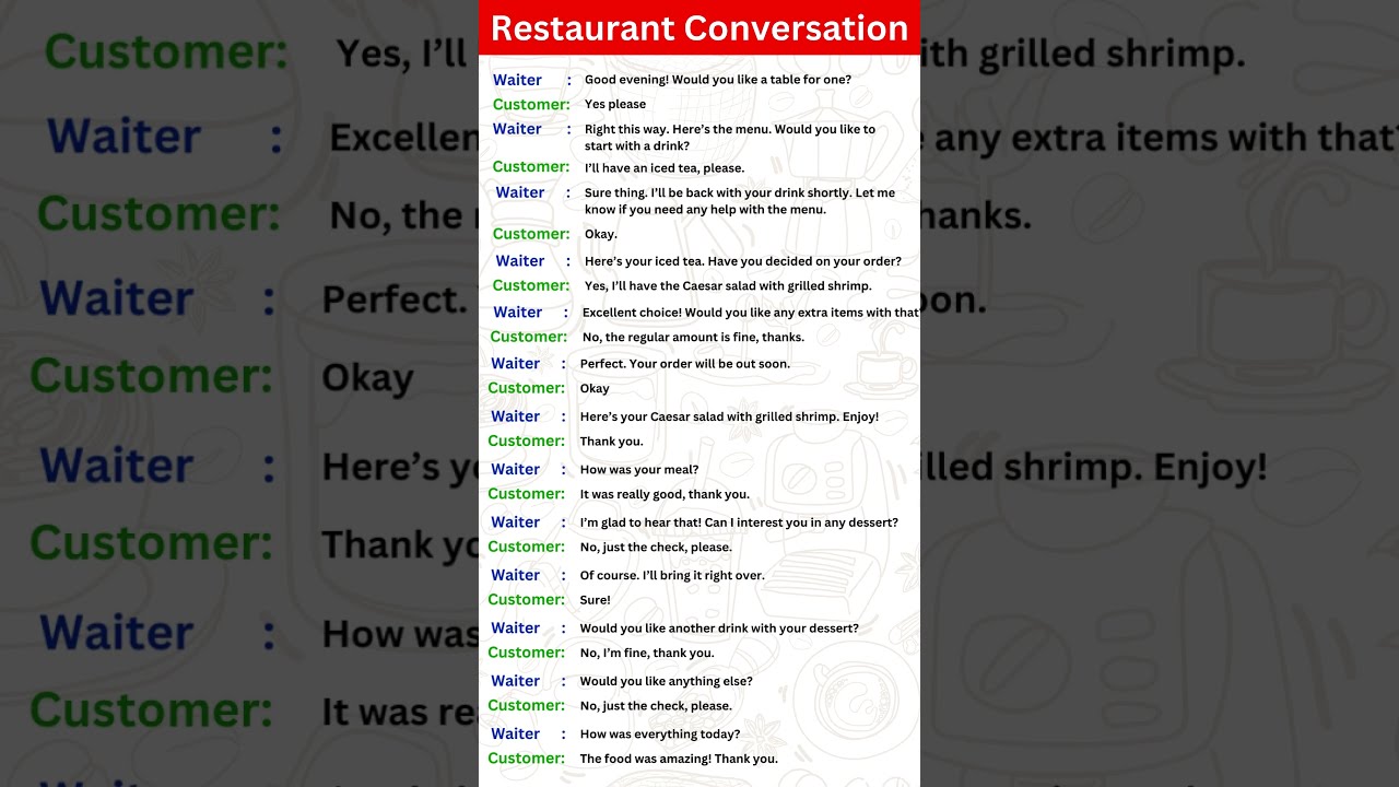 Whether you’re ordering food, asking for the menu, or paying the bill, this video will guide you through common restaurant conversations in English. Perfect for anyone looking to improve their English speaking skills for real-life situations!