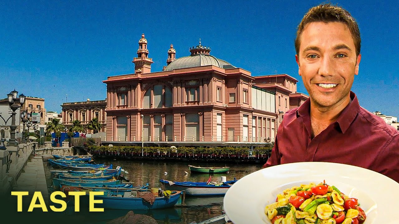Chef Gino D’Acampo makes a culinary journey around his native Italy. In this episode, he explores the intriguing region of Puglia, where centuries-old tradition meets the modern world. The area is famous for its olive oil, and Gino examines the gnarled olive trees which have dominated the landscape for thousands of years. In the shade of an old masseria, or farmhouse, he dishes up a carpaccio of tender beef fillet, served with a refreshing Italian gremolata dressing and rocket salad. In Puglia’s capital, Bari, Gino samples an innovative olive oil ice cream. Then, tucked away in one of Bari’s medieval side streets, he comes across a group of local ladies skilfully handcrafting orecchiette – little ears pasta. Our chef is keen to learn the ancient technique but proves better at cooking the pasta than shaping it. So he creates a plate of orecchiette with broccoli, cherry tomatoes and chilli, then heads out to the town’s harbour to mix with the locals at sunset.