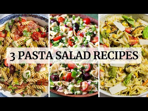If you are looking for easy and healthy pasta salads that you can make all summer long, these pasta salad recipes are for you! Greek Pasta Salad, Italian Pasta Salad and Summer Pasta Salad—all three of these pasta salads can be made ahead of time making them perfect for meal prep or as a side dish for cook outs next to summer meals like grilled chicken, burgers or more! #pastasalad #saladrecipe #pastasaladrecipe