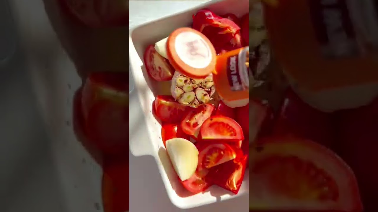 1. Chop off the top of your garlic bulb, leaving the cloves exposed. With your garlic, place all your other chopped vegetables into a large baking dish, drizzle generously with olive oil, chilli flakes, salt and pepper and bake at 200C for 50-60 mins until the vegetables are slightly charred and soft.