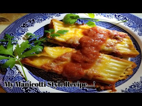 Manicotti , literally, ” little sleeve”, is an Italian American kind of pasta. They are very large pasta tubes, is usually ridged, that are intended to be stuffed and baked. The filling is generally ricota cheese, parmesan, shredded cheese, egg, basil, italian powder and sauce. So yummy and cheesy!