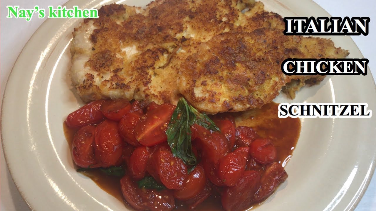 Fried Chicken breast crust with a Parmesan cheese and herb then served with cooked cherry tomatoes ! cherry tomatoeschickenchicken breastchicken menucuisineFoodhow to cookhow to makeitalianItalian chicken schnitzelitalian cuisineitalian foodItalyItaly CuisineItaly FoodschnitzelvideoVlogwith a Parmesan herb crustwith fresh basilYouTubeวิธีทําอกไก่อาหารอิตาลีอาหารอิตาเลียนเมนูไก่ທອດໄກ່ສະໝຸນໄພອາຫານອິຕາລີ