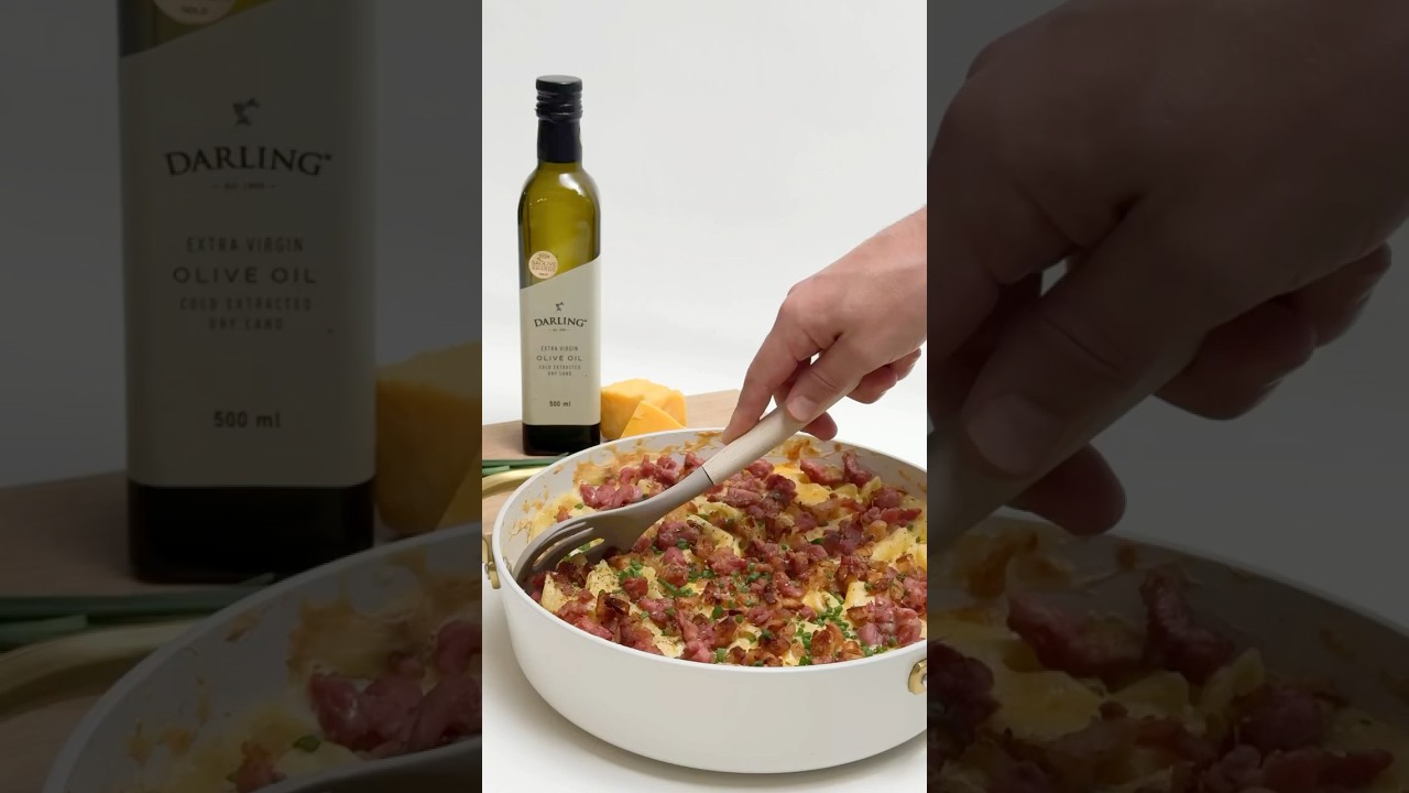8. Add the bacon and sourdough crumble on top and place in the oven for 20 to 25 minutes.