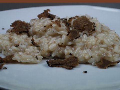 Hello everybody by Cucinaconoi, today I propose you the recipe of the black truffle risotto. The ingredients we need for 4 portions are: 360 grams of superfine rice, I’ve chosen the Carnaroli, 1 litres and a half of white roux, you will find the recipe on our website, www.cucinaconoi.it , half a glass of white wine, 40-45 grams of summer black truffle, 30 grams of butter, 20 grams of white onion cut finely, 20 grams of grana or grated parmesan, salt, pepper and 2-3 spoons of extra virgin olive oil.