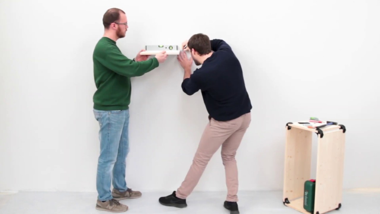 The wall attachment system consists of a dowel and a threaded bar. The threaded bar has a head that inserted in the connector allows fixing with a normal Allen key.