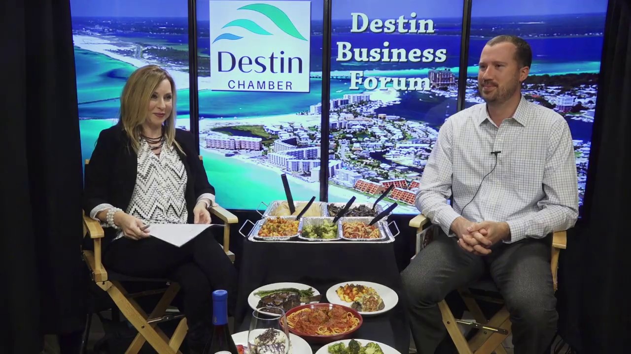 During the Destin Chamber’s January 2017 Destin Business Forum, host Amy Perry of Pleat & Perry, P.A., interviews Jesse Newman, managing partner of Carrabba’s Italian Grill’s Sandestin location.