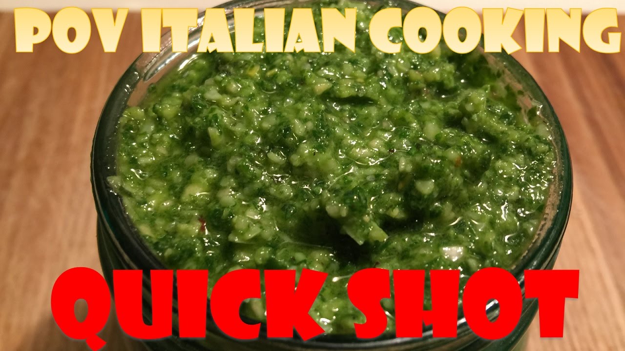 Quick Shot #1 of POV Italian Cooking demonstrates how to make basil pesto. The Quick Shot series are shorter videos, around 3 – 6 minutes in length, intended to demonstrate how to prepare an ingredient, side dish, salad and other items.