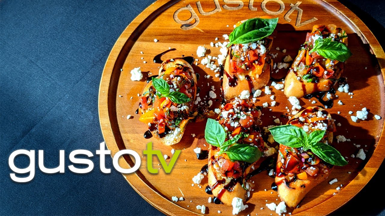 Tomato Basil Bruschetta with Balsamic Glaze and Feta Cheese served atop warm crostini — SUBSCRIBE to Gusto: SUBSCRIBE to our BBQ Channel: LIKE us on Facebook: FOLLOW us on Instagram:For more delicious recipes, go to AuthenticbruschettaCrostiniFEASTitalianItalian RecipesItalyItaly RecipesrecipevideoVlogYouTube