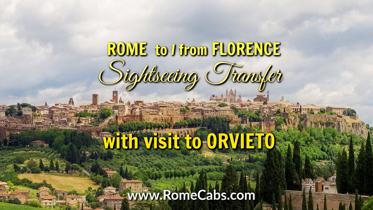 (www.RomeCabs.com) Enhance your private Transfer between Rome and Florence with a visit to the historic hilltop town Orvieto – the jewel of Umbria. Your personal Stefano’s RomeCabs English speaking driver will pick you up in your private deluxe vehicle at your hotel accommodation, and on the way to your final destination you will enjoy exploring Orvieto. Visit our website for more information and to book your Italy Sightseeing Transfers!
