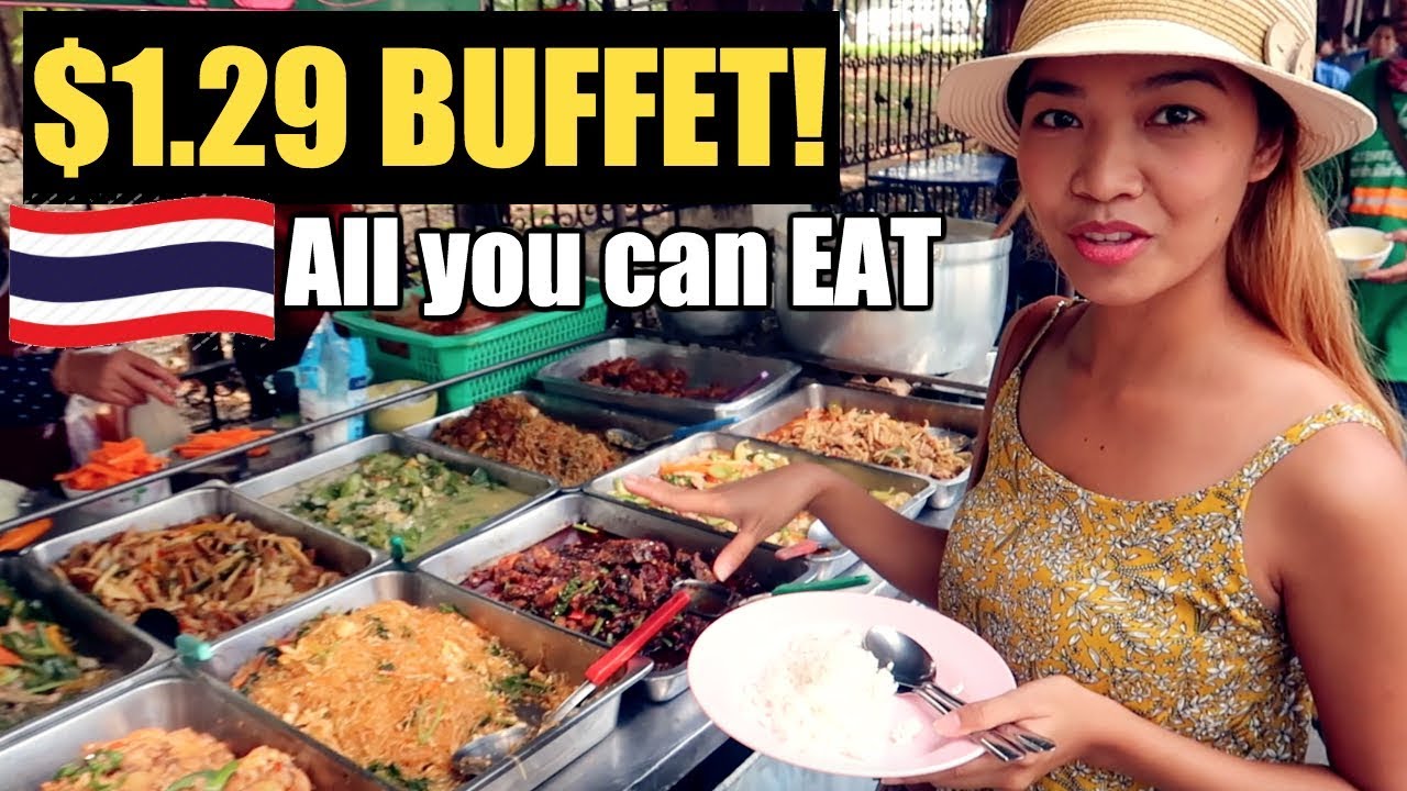 $1.29 BUFFET – ALL YOU CAN EAT THAI STREET FOOD in BANGKOK THAILAND!