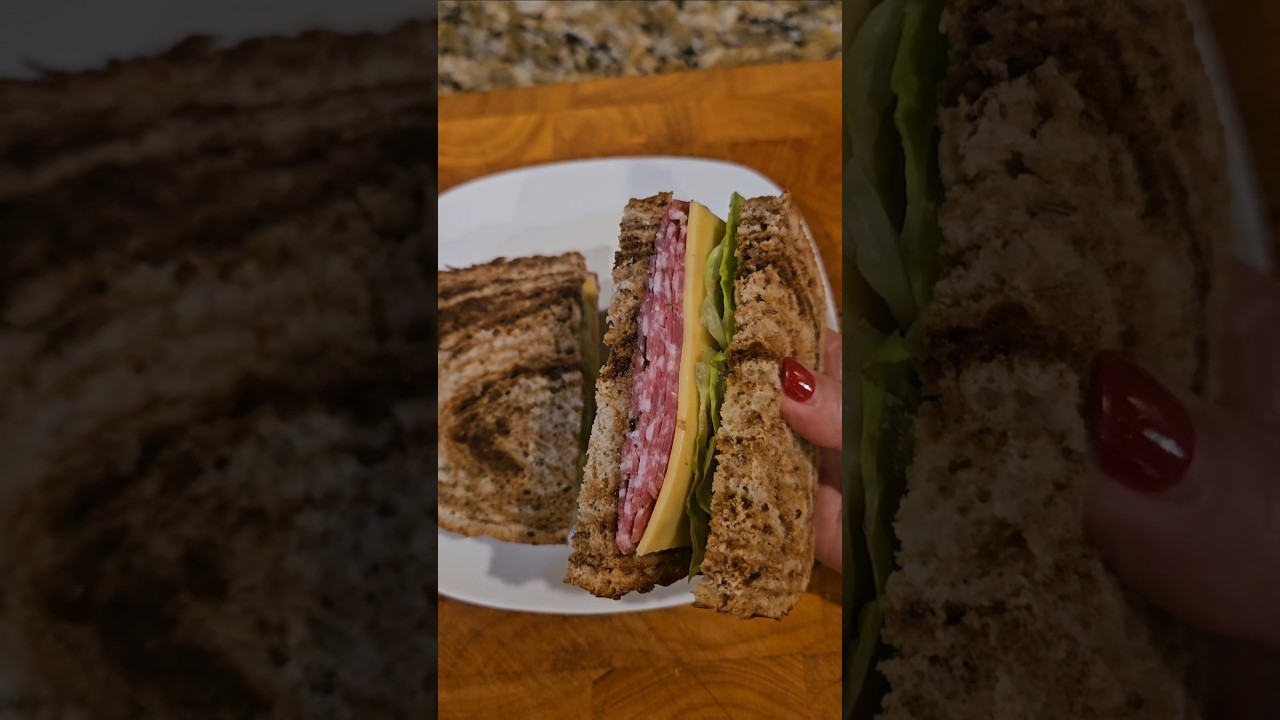 Home cooking recipe of sandwich, sliced bread, gouda cheese, Italian salami, lettuce and strawberry jelly, delicious and easy to make. #sandwich #salami
