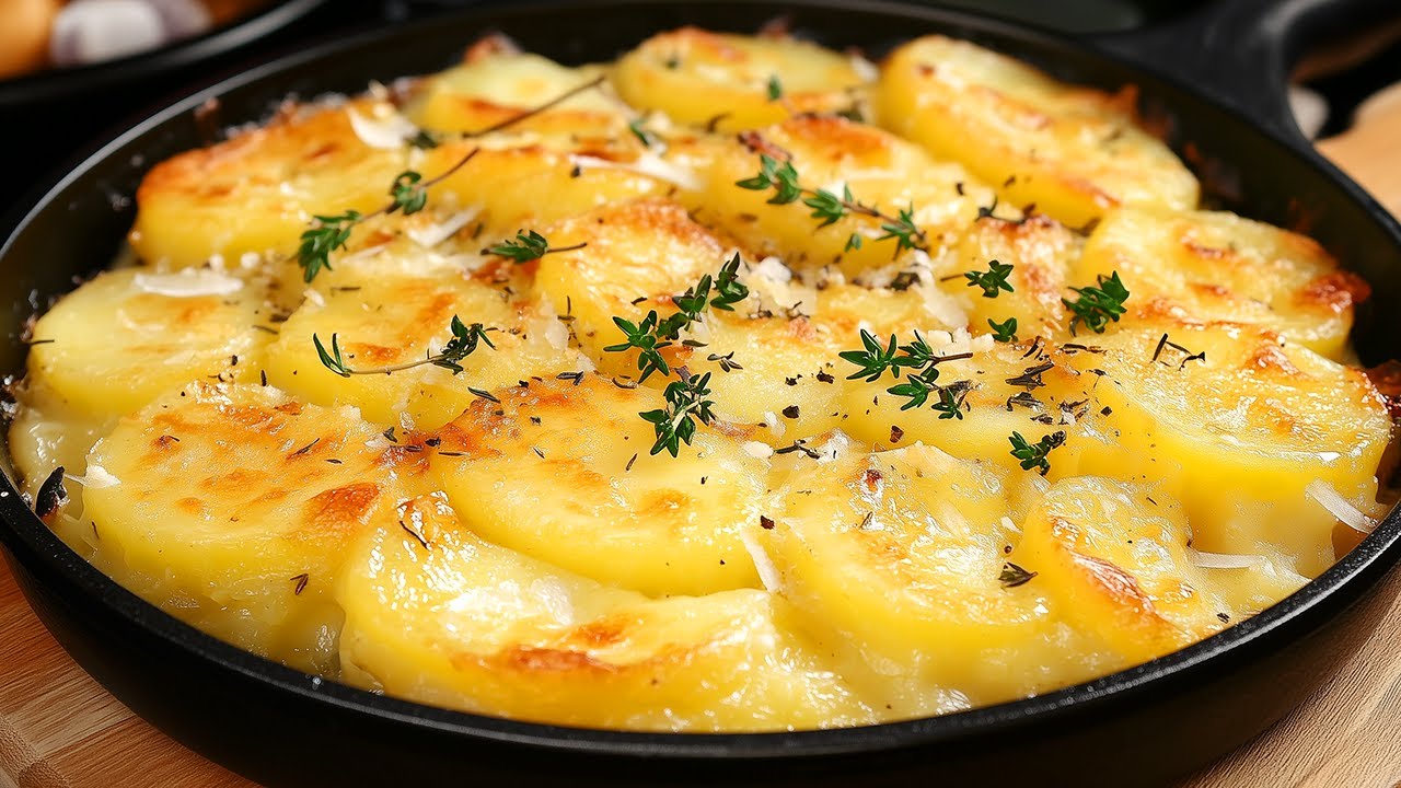 Tender potato slices are layered with flavorful ground beef sautéed with onions, mushrooms, garlic, thyme, and paprika. Everything is baked under foil until soft and juicy — and then topped with a generous layer of Parmesan that melts into a golden, aromatic crust. 🧀🔥