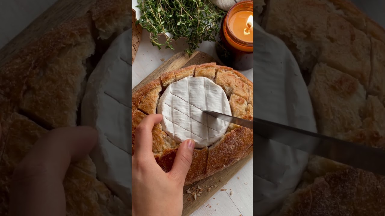 Just imagine: crispy garlic bread combined with tender Camembert, sweet honey, and aromatic bacon. I ate two of these loaves in two days and I don’t regret a thing. Bread – 1 Camembert – 1 pc. Butter – 40 g Bacon – 3 slices Honey – 2 tbsp Garlic – 2 cloves Salt – 1/3 tsp Thyme. 1. Cut a hole in the bread the size of the Camembert, trim off any excess crumb. Make diagonal cuts all over the bread. 2. Place the Camembert in the hole and also make diagonal cuts. 3. Melt the butter, add salt, crushed garlic and thyme leaves. 4. Pour some of the mixture over the Camembert, generously grease the slits in the bread with the rest. 5. Finely chop the bacon, place it in a cold frying pan and fry until the fat is melted. 6. Drizzle the Camembert with honey, lay out the bacon and garnish with thyme sprigs. 7. Bake in the oven for 15-20 minutes at 180°. #recipe #recipes #simplerecipes #camembert #foodblog #foryou