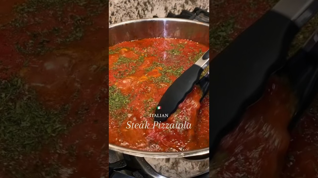 Carne Pizzaiola is a thinly sliced steak that is pan-cooked with garlic and then braised in a chunky tomato sauce. This Italian recipe is packed with so much flavor and a little spice from the red pepper flakes! This is your next dinner recipe idea! 🇮🇹🍅