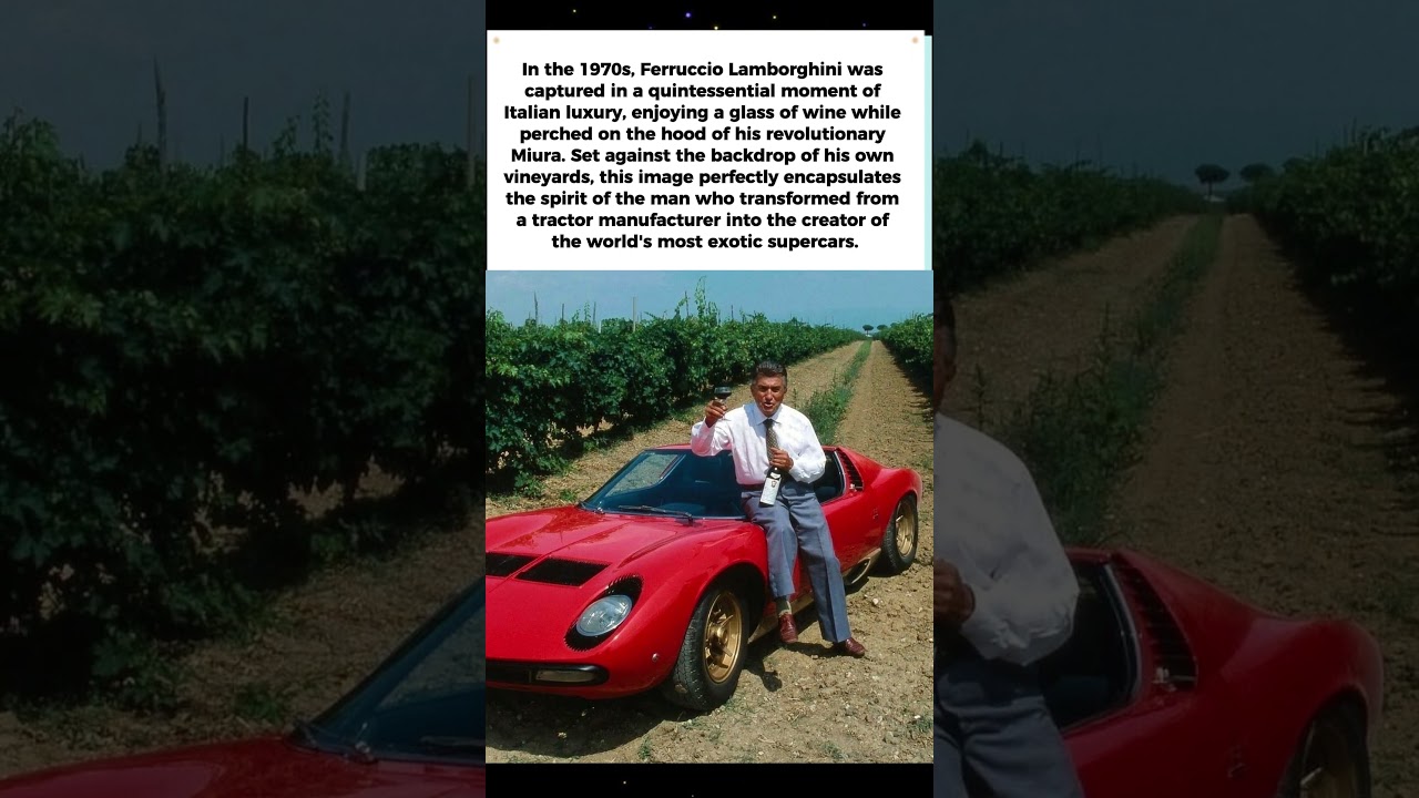 A legendary photo of Ferruccio Lamborghini relaxing with wine on his iconic Miura. Captured in the 1970s among his Italian vineyards, this image defines the passion and style behind the Lamborghini brand. #Lamborghini #FerruccioLamborghini #Miura #1970s #Supercars #Italy #VintageLifestyle #CarHistory #Shorts #YouTubeShorts #Trending