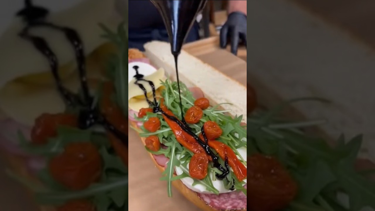 Italian Sandwich – A crisp filone cut through the center, filled with mortadella, provolone, sun-dried tomatoes, fresh arugula, olive oil, and balsamic, built in soothing silence.
