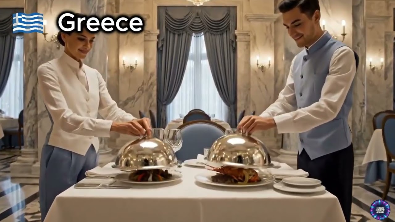 Step into a world of ultimate luxury fine dining through this cinematic ASMR experience. Each scene takes place in an opulent, high-end restaurant inspired by the most prestigious dining traditions from around the world. Elegant waiters serve exquisite gourmet dishes under silver cloches, revealing steaming plates in complete silence — except for refined ASMR sounds of footsteps, fabric, metal, and rising steam.