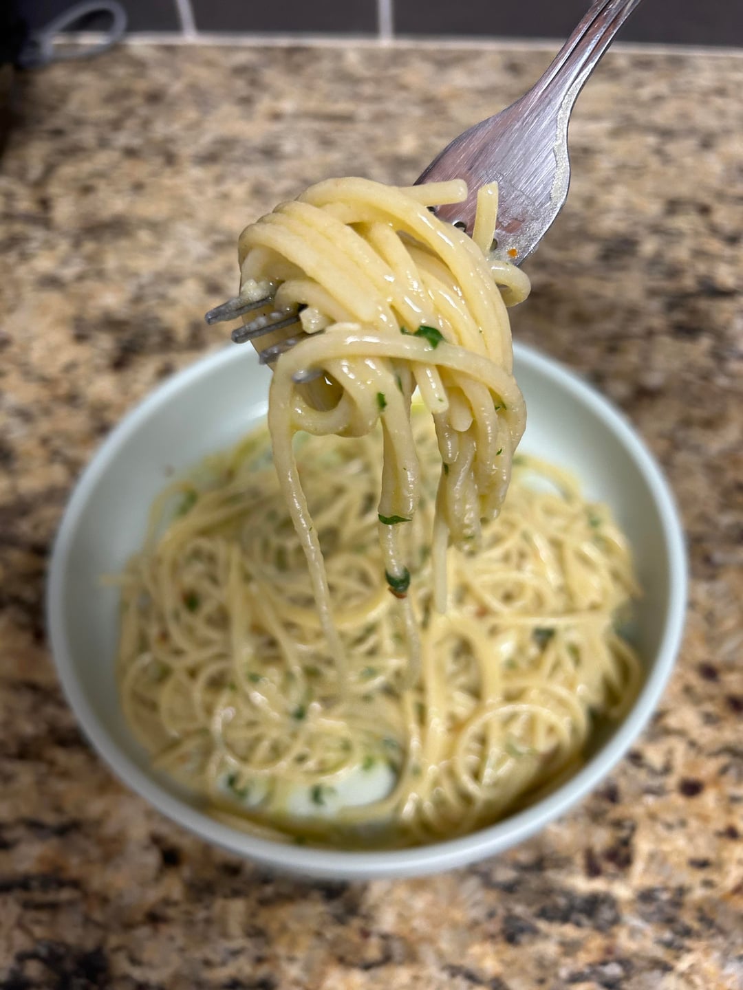 Thought aglio e olio was one of the fancier pasta dishes; didn't realize it was a late-night snack that can be made however you want for Italian folks.