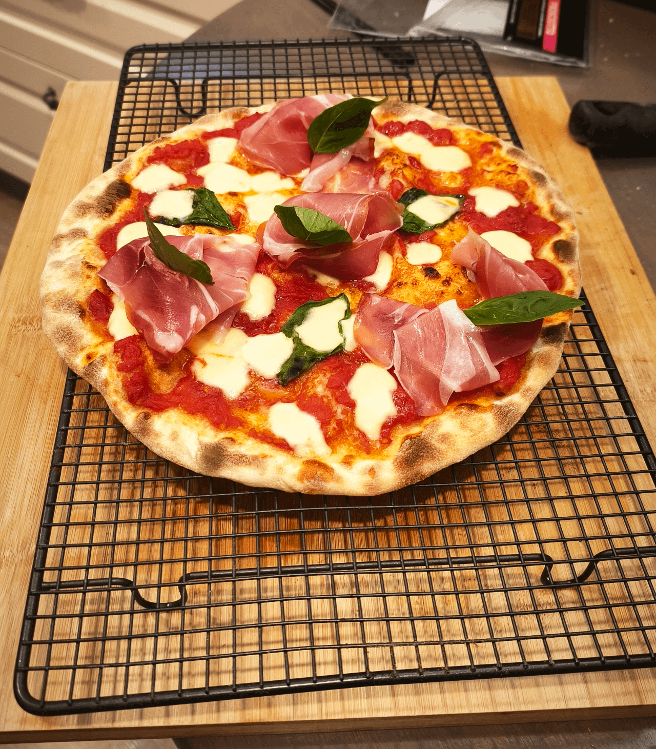 Looks yummy, I generally prefer slightly more charred on the border, but for being done with a general-purpose oven, is great.