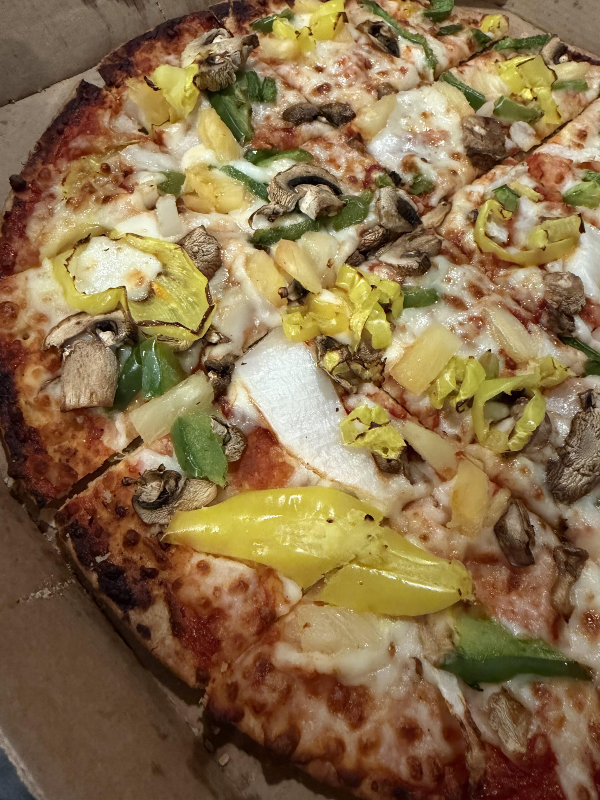 Healthy? Thin-crust Veggie: pineapple, banana peppers, mushrooms, peppers, and onionsby KheetoDiet pizzaTakeawayWrite A CommentYou must be logged in to post a comment.